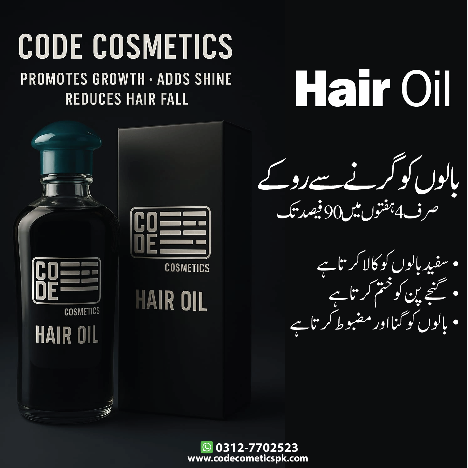 💬 ابھی آرڈر کریں اور آزمائیں – کوڈ ہیئر آئل – فرق جو نظر آئے!
